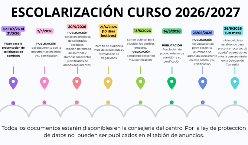 El próximo 15 de septiembre comienza el nuevo curso escolar 25/26. El horario para la jornada del lunes será el siguiente: Horario de acogida